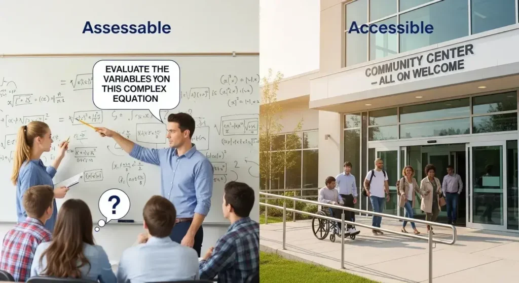 The difference between assessable or accessible is simple once you understand the core idea. Assessable is about evaluation, judgment, and measurement. Accessible is about ease, availability, and reach.